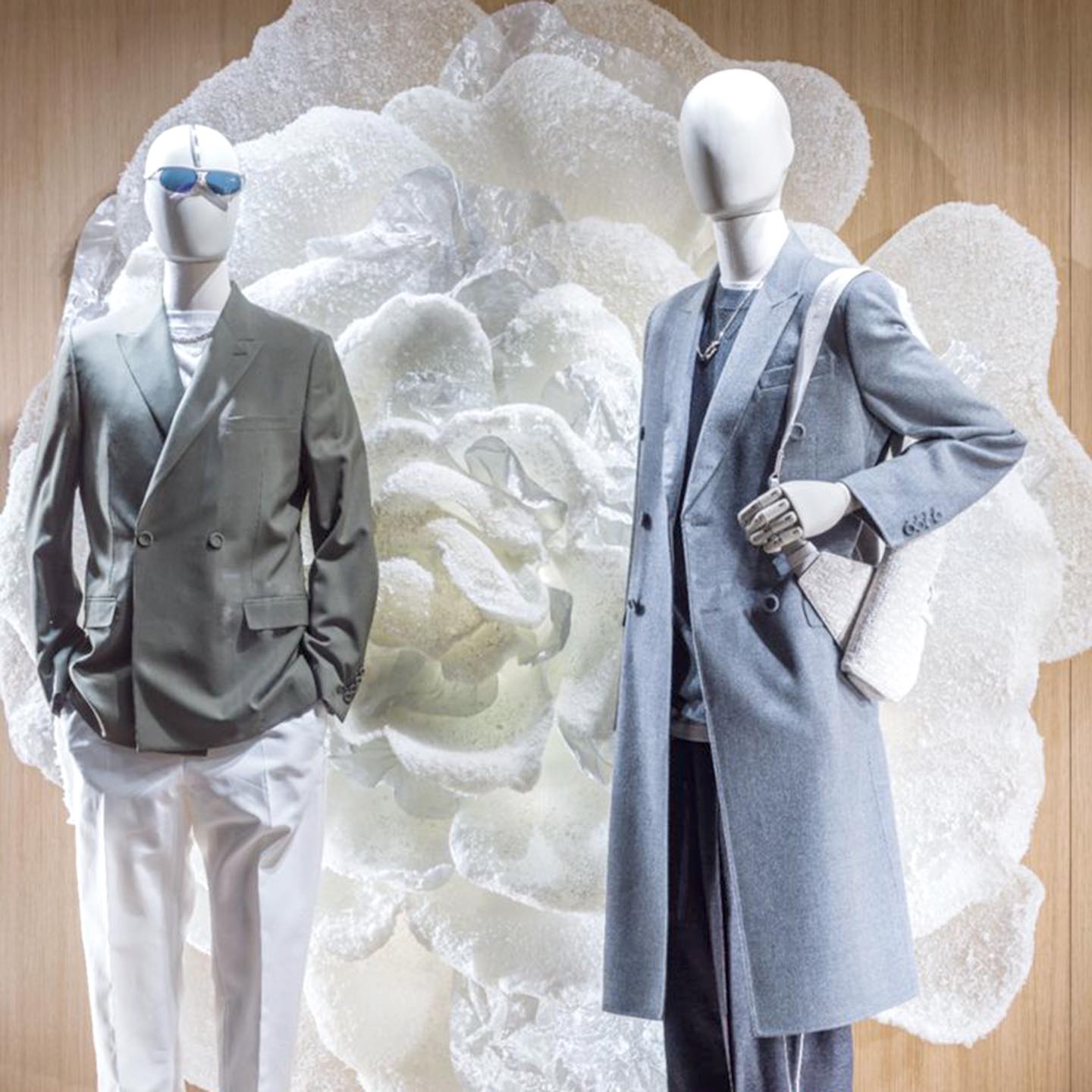 Trang trí ô cửa sổ trưng bày cũng là cách trang trí rất độc đáo cho các cửa hàng, đặc biệt là cửa hàng thời trang. Những cây hoa khổng lồ sẽ tạo nên điểm nhấn ấn tượng thu hút sự chú ý đến sản phẩm trưng bày.